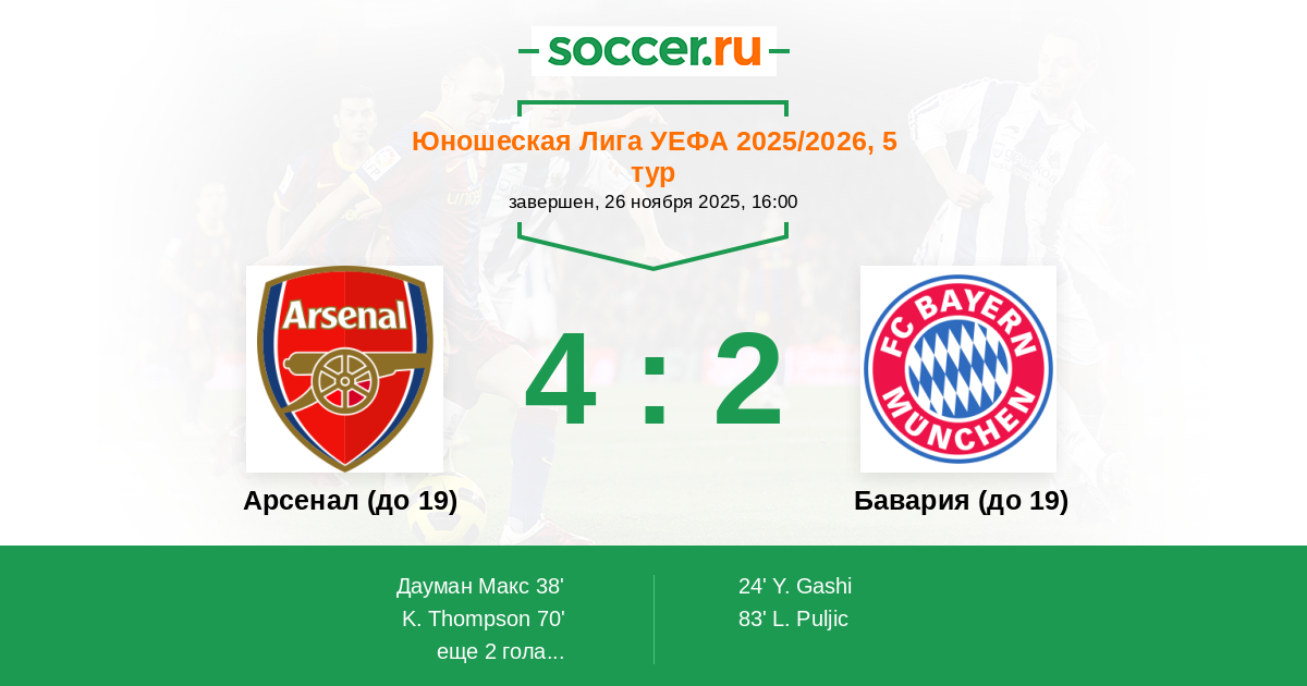 Протокол матча Арсенал (до 19) против Бавария (до 19)