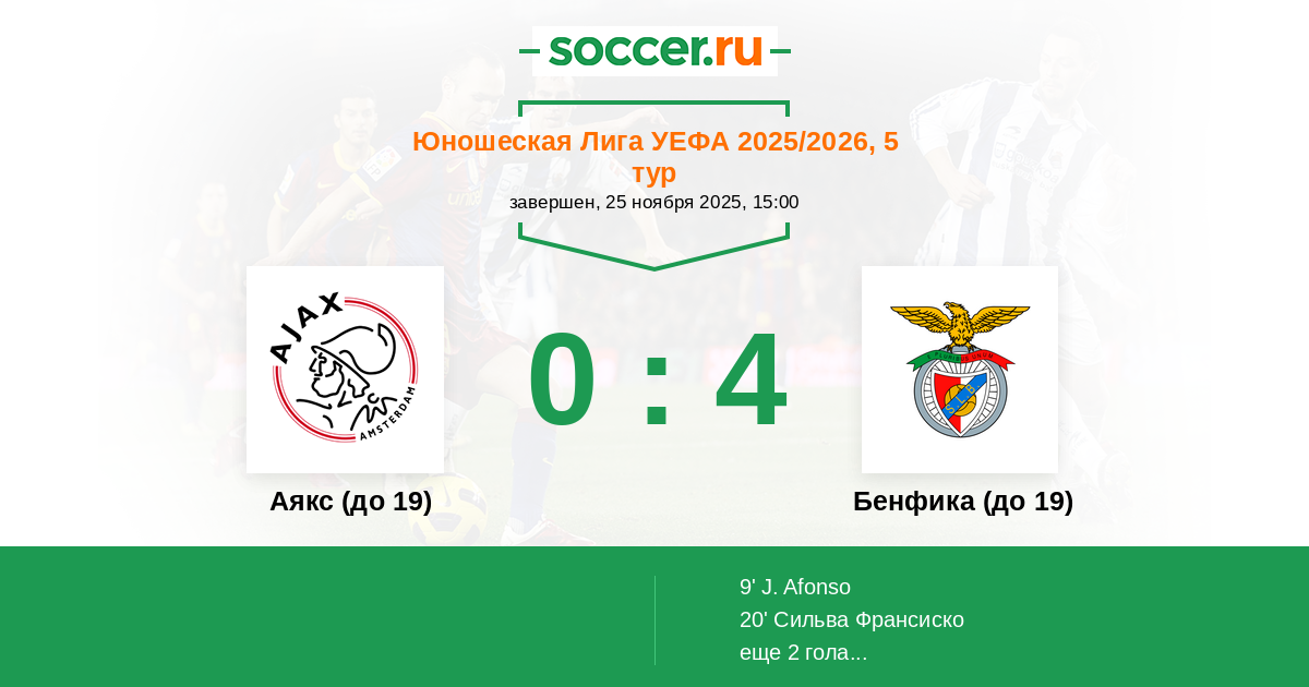 Протокол матча Аякс (до 19) против Бенфика (до 19)