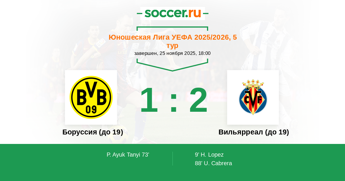 Протокол матча Боруссия (до 19) против Вильярреал (до 19)