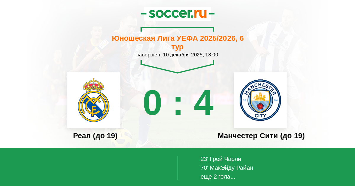Протокол матча Реал (до 19) против Манчестер Сити (до 19)