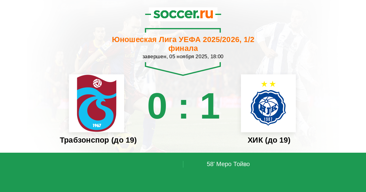 Протокол матча Трабзонспор (до 19) против ХИК (до 19)