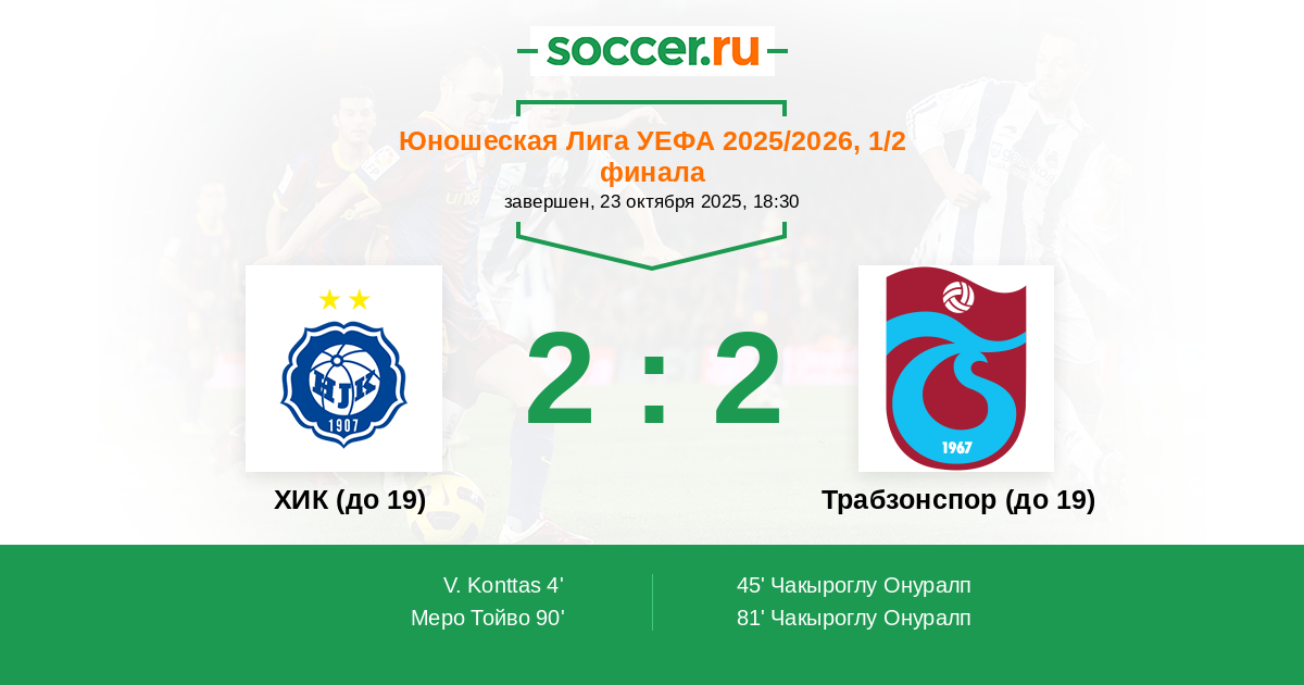 Протокол матча ХИК (до 19) против Трабзонспор (до 19)