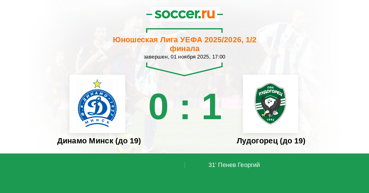 Протокол матча Динамо Минск (до 19) против Лудогорец (до 19)
