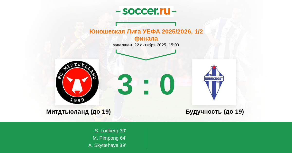 Протокол матча Митдтьюланд (до 19) против Будучность (до 19)