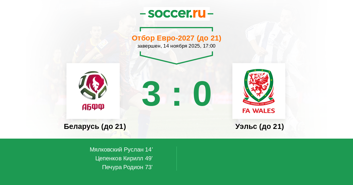 Протокол матча Беларусь (до 21) против Уэльс (до 21)