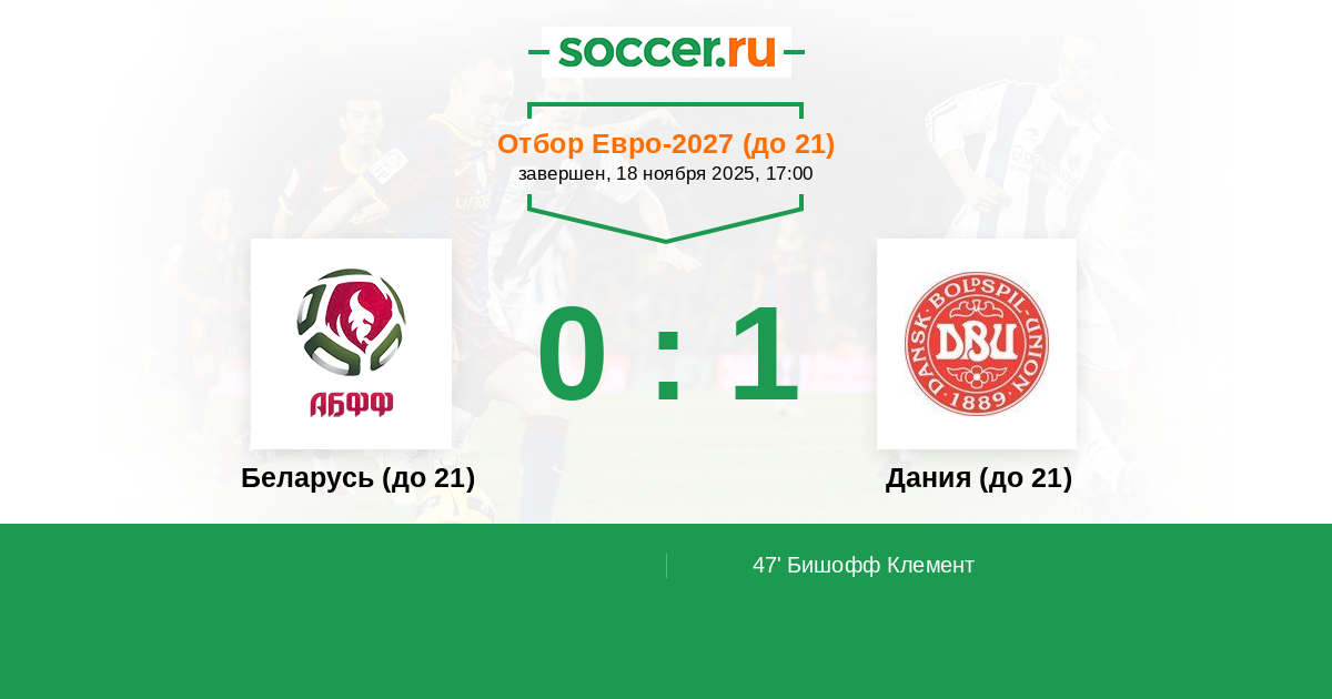 Протокол матча Беларусь (до 21) против Дания (до 21)