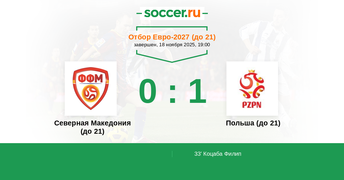 Протокол матча Северная Македония (до 21) против Польша (до 21)
