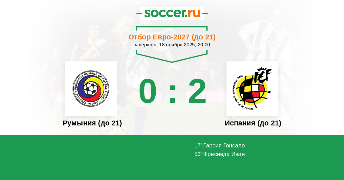 Протокол матча Румыния (до 21) против Испания (до 21)