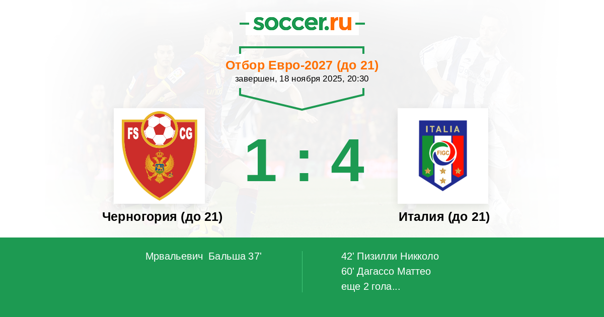 Протокол матча Черногория (до 21) против Италия (до 21)