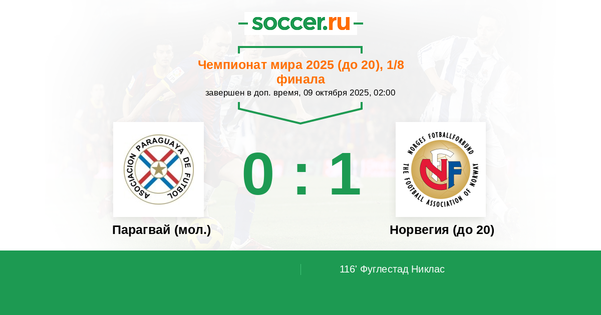 Протокол матча Парагвай (мол.) против Норвегия (до 20)