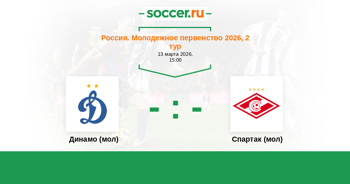 Россия. Премьер-Лига U21 17.03.2023 Спартак (мол) Логотип футбольный клуб Спартак (мол) (Москва) 1:2 Логотип футбольный клуб Динамо (мол) (Москва) Динамо (мол)