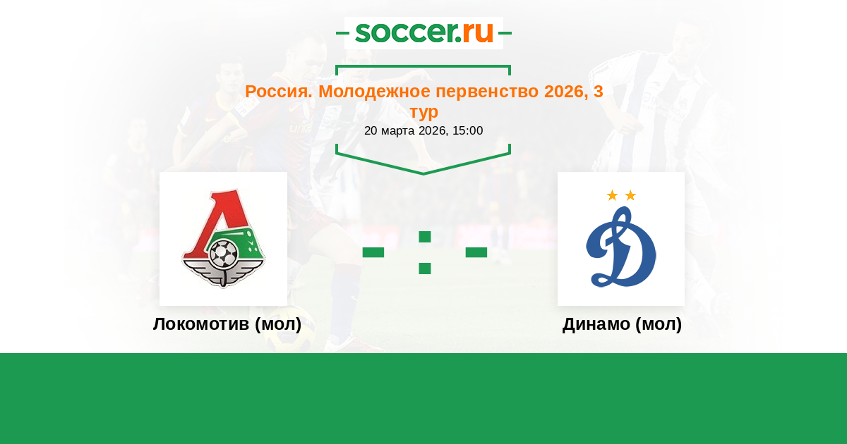 Россия. Премьер-Лига U21 29.03.2019 Динамо (мол) Логотип футбольный клуб Динамо (мол) (Москва) 0:1 Логотип футбольный клуб Локомотив (мол) (Москва) Локомотив (мол)