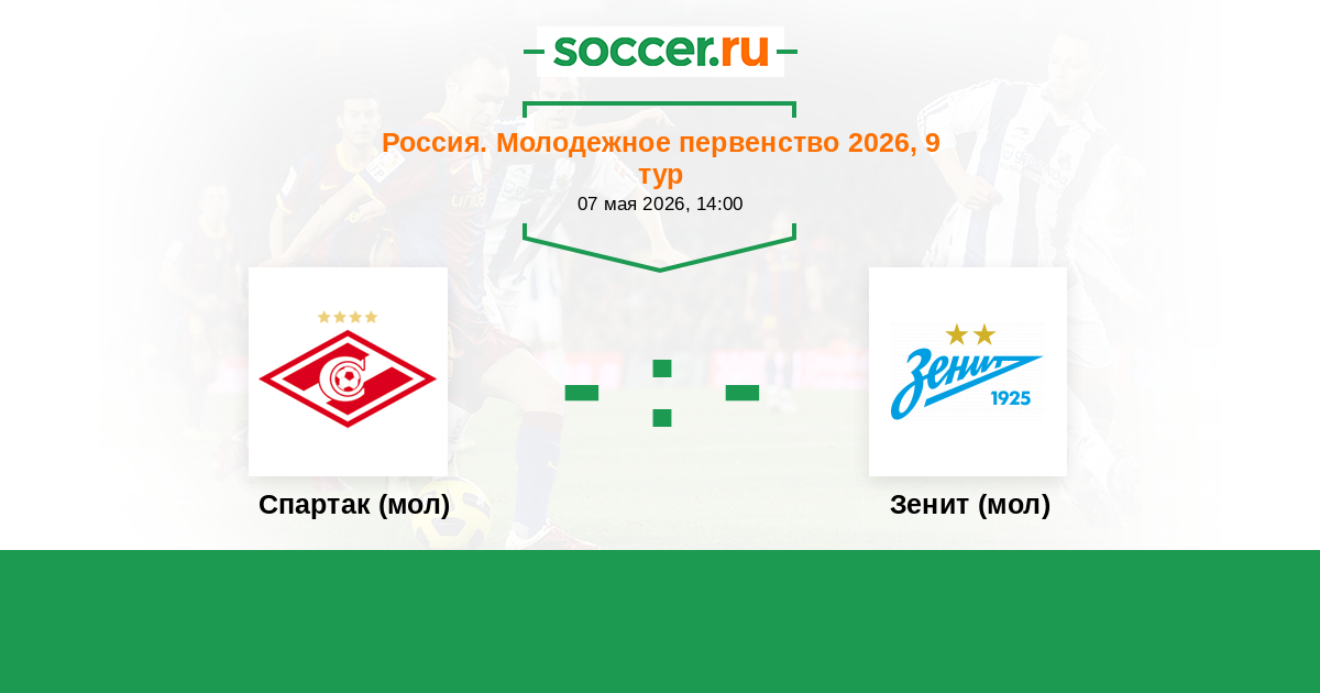 Россия. Премьер-Лига U21 25.09.2015 Спартак (мол) Логотип футбольный клуб Спартак (мол) (Москва) 2:1 Логотип футбольный клуб Зенит (мол) (Санкт-Петербург) Зенит (мол)