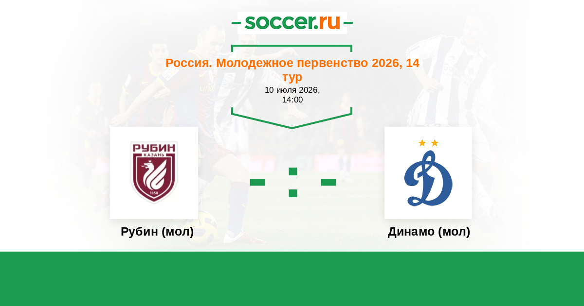 Россия. Премьер-Лига U21 26.10.2014 Динамо (мол) Логотип футбольный клуб Динамо (мол) (Москва) 3:0 Логотип футбольный клуб Рубин (мол) (Казань) Рубин (мол)
