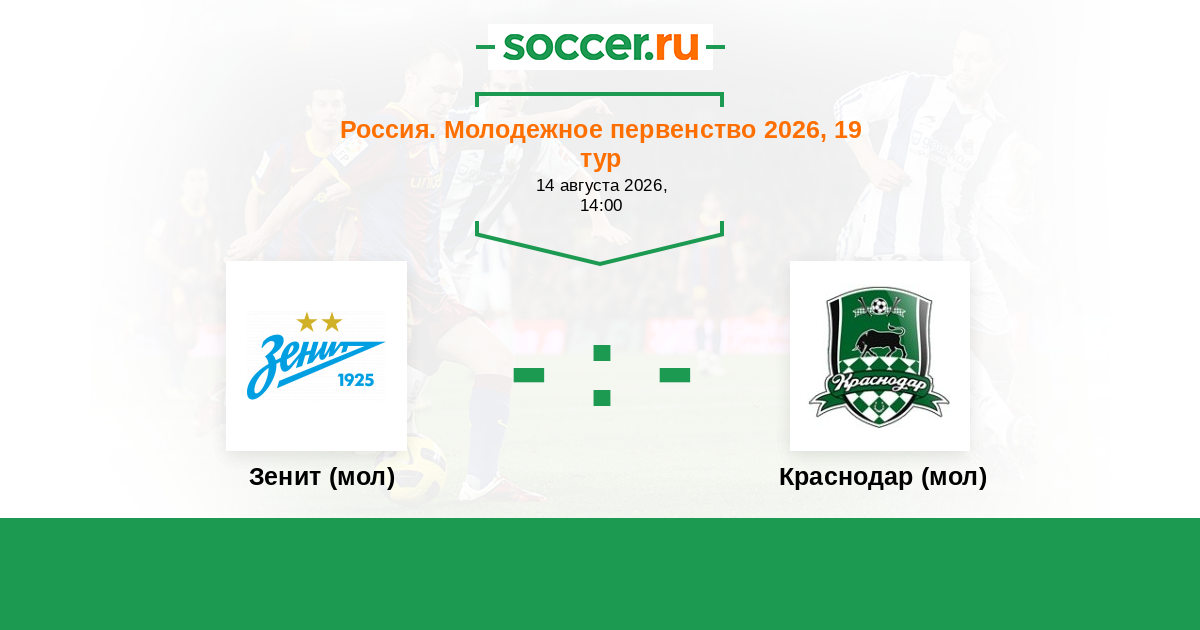 Россия. Премьер-Лига U21 15.08.2015 Зенит (мол) Логотип футбольный клуб Зенит (мол) (Санкт-Петербург) 2:0 Логотип футбольный клуб Краснодар (мол) Краснодар (мол)