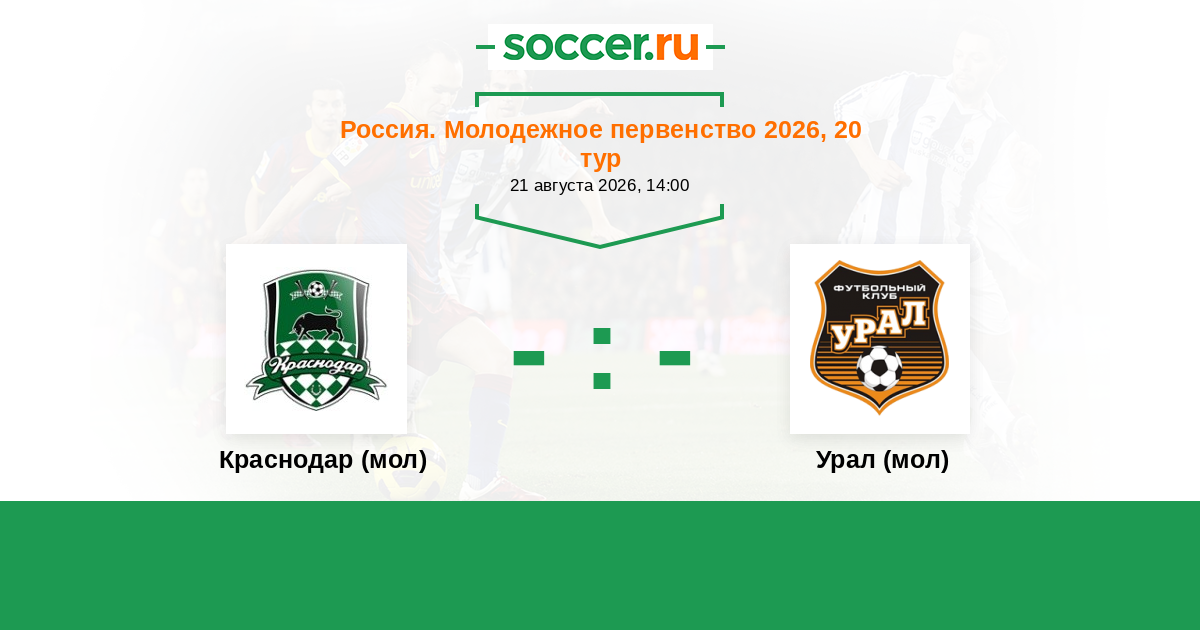 Россия. Премьер-Лига U21 09.04.2016 Краснодар (мол) Логотип футбольный клуб Краснодар (мол) 0:0 Логотип футбольный клуб Урал (мол) (Екатеринбург) Урал (мол)