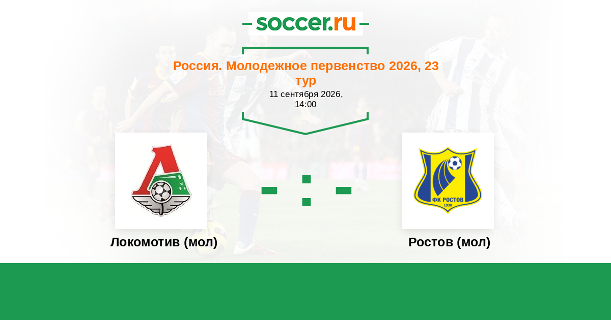 Россия. Премьер-Лига U21 23.09.2017 Ростов (мол) Логотип футбольный клуб Ростов (мол) (Ростов-на-Дону) 1:1 Логотип футбольный клуб Локомотив (мол) (Москва) Локомотив (мол)