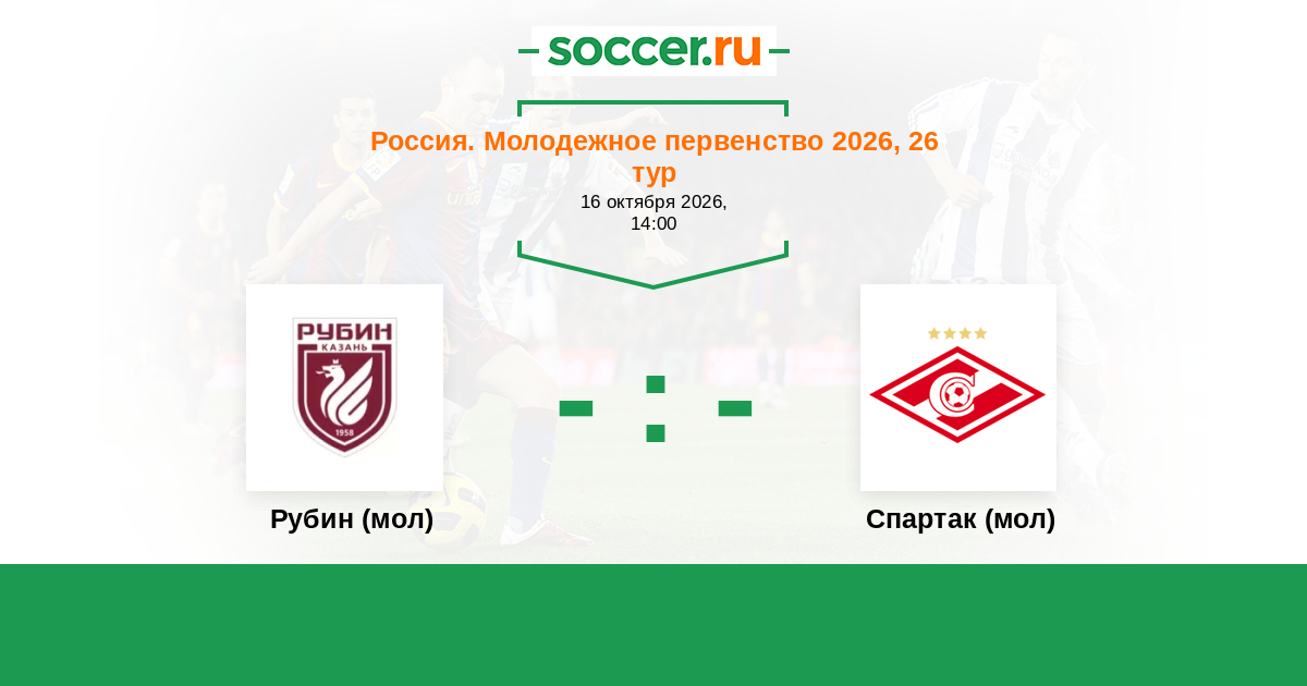 Россия. Премьер-Лига U21 18.10.2019 Спартак (мол) Логотип футбольный клуб Спартак (мол) (Москва) 1:0 Логотип футбольный клуб Рубин (мол) (Казань) Рубин (мол)