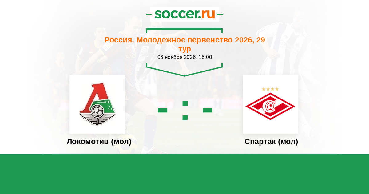 Россия. Премьер-Лига U21 10.09.2016 Спартак (мол) Логотип футбольный клуб Спартак (мол) (Москва) 2:0 Логотип футбольный клуб Локомотив (мол) (Москва) Локомотив (мол)