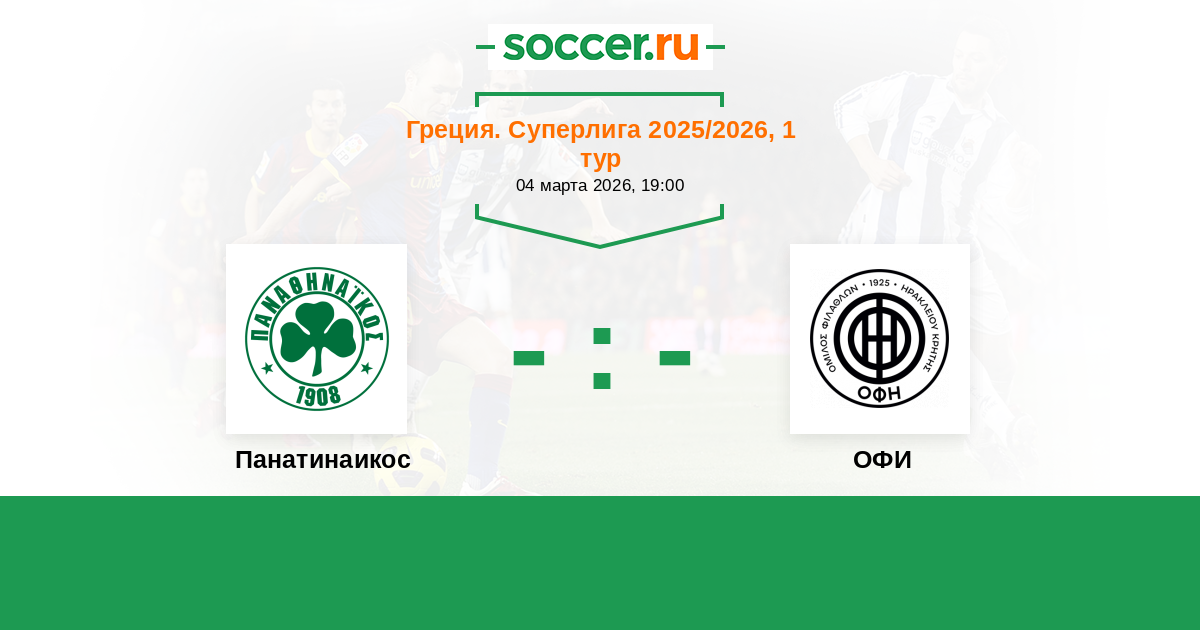 Греция. Суперлига 18.10.2020 ОФИ Логотип футбольный клуб ОФИ (Ираклион) 2:2 Логотип футбольный клуб Панатинаикос (Афины) Панатинаикос
