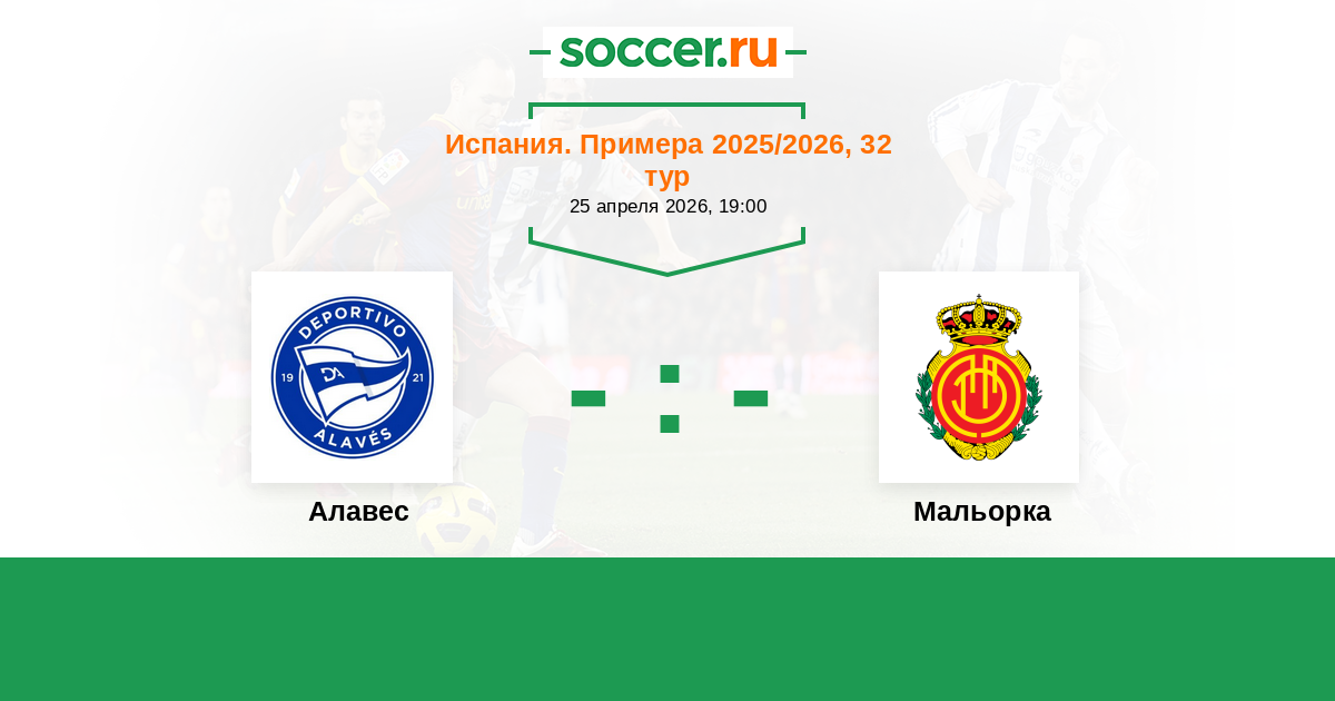 Испания. Примера 24.02.2024 Алавес Логотип футбольный клуб Алавес (Витория-Гастейс) 1:1 Логотип футбольный клуб Мальорка (Пальма-де-Мальорка) Мальорка