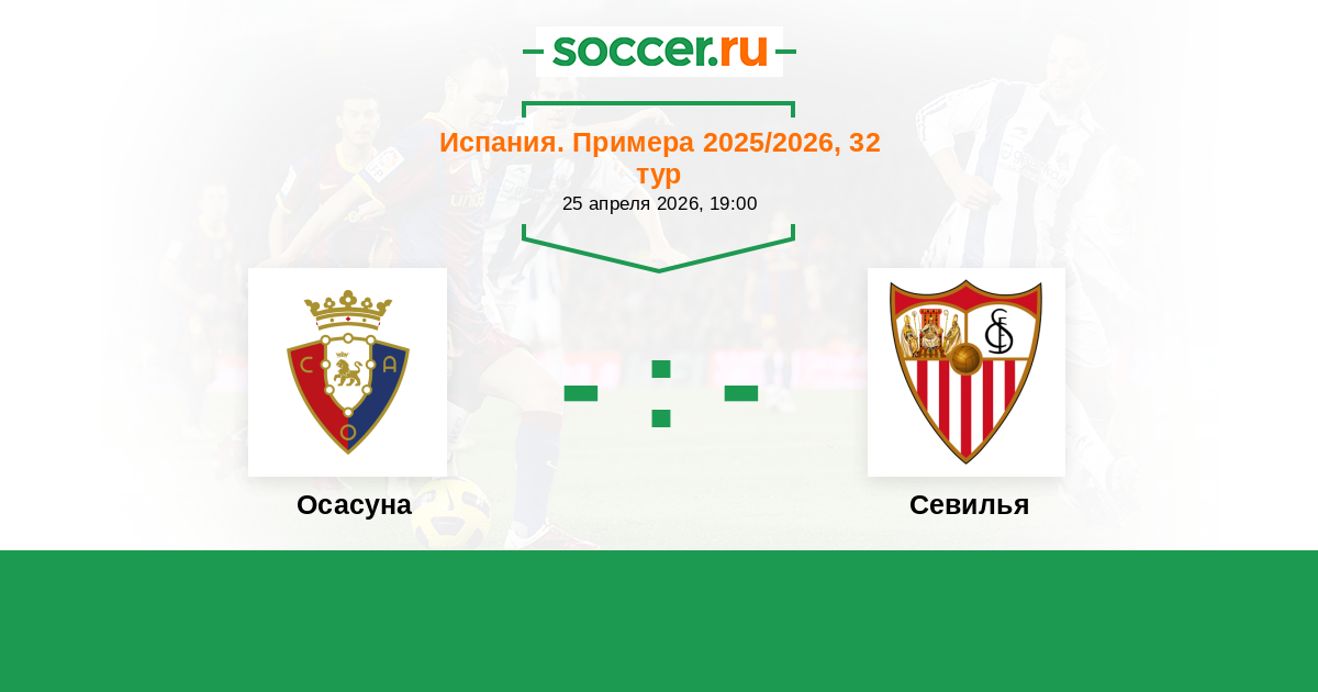 Испания. Примера 02.12.2024 Севилья Логотип футбольный клуб Севилья 1:1 Логотип футбольный клуб Осасуна (Памплона) Осасуна