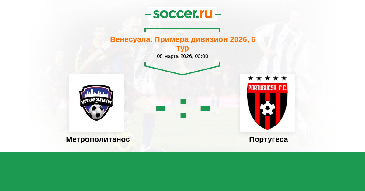 Венесуэла. Примера дивизион 02.05.2022 Португеса Логотип футбольный клуб Португеса (Акаригуа) 0:0 Логотип футбольный клуб Метрополитанос (Лос-Текес) Метрополитанос