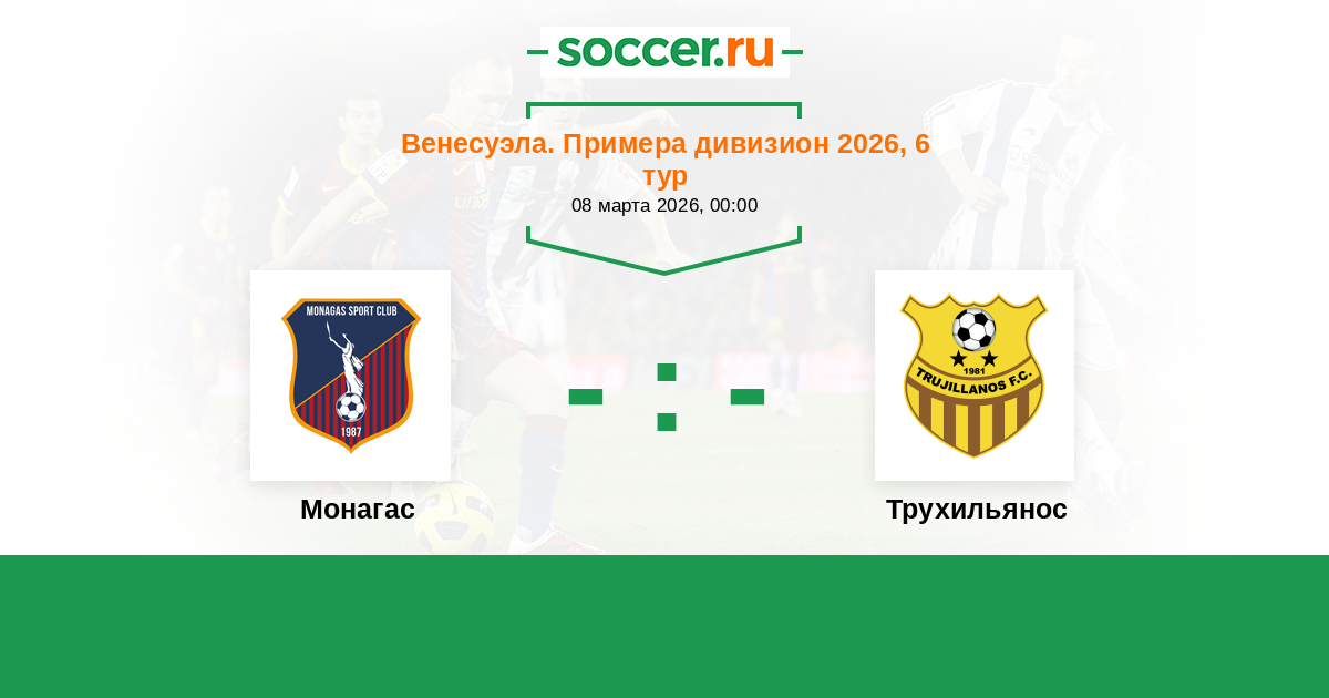 Венесуэла. Примера дивизион 27.03.2019 Монагас Логотип футбольный клуб Монагас (Матурин) 2:1 Логотип футбольный клуб Трухильянос (Валера) Трухильянос