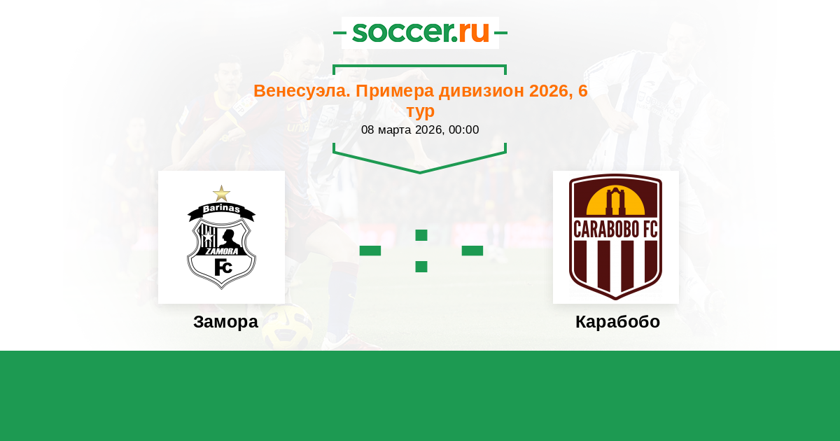 Венесуэла. Примера дивизион 25.03.2022 Карабобо Логотип футбольный клуб Карабобо (Валенсия) 1:1 Логотип футбольный клуб Замора (Баринас) Замора