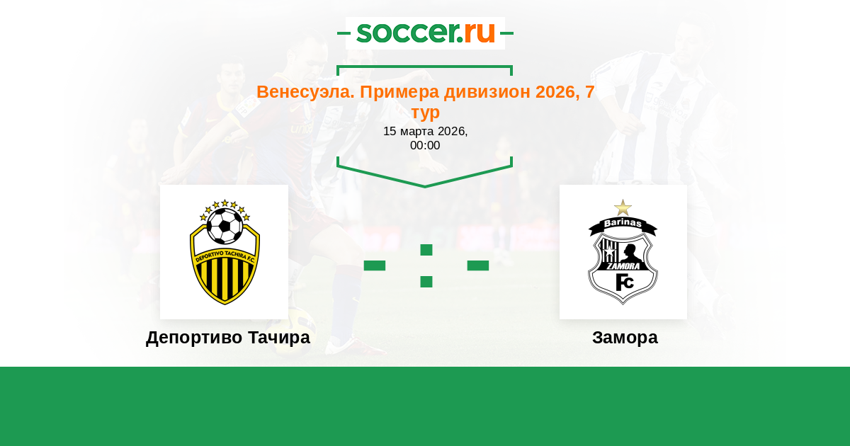 Венесуэла. Примера дивизион 20.03.2018 Замора Логотип футбольный клуб Замора (Баринас) 1:0 Логотип футбольный клуб Депортиво Тачира (Сан-Кристобаль) Депортиво Тачира