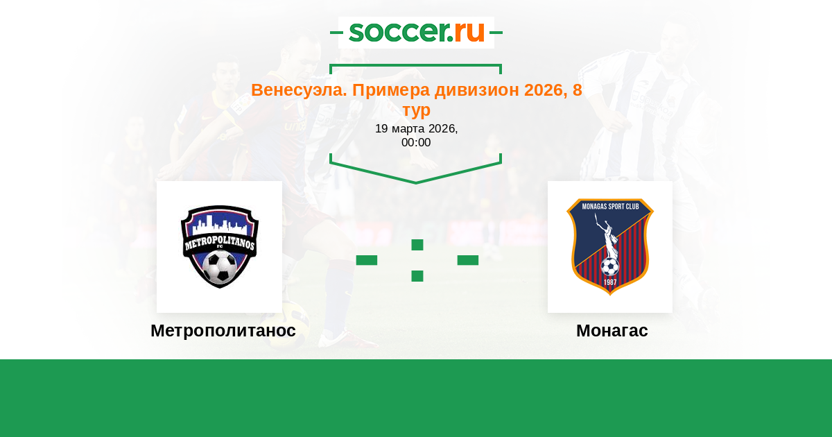 Венесуэла. Примера дивизион 29.03.2022 Монагас Логотип футбольный клуб Монагас (Матурин) 2:1 Логотип футбольный клуб Метрополитанос (Лос-Текес) Метрополитанос