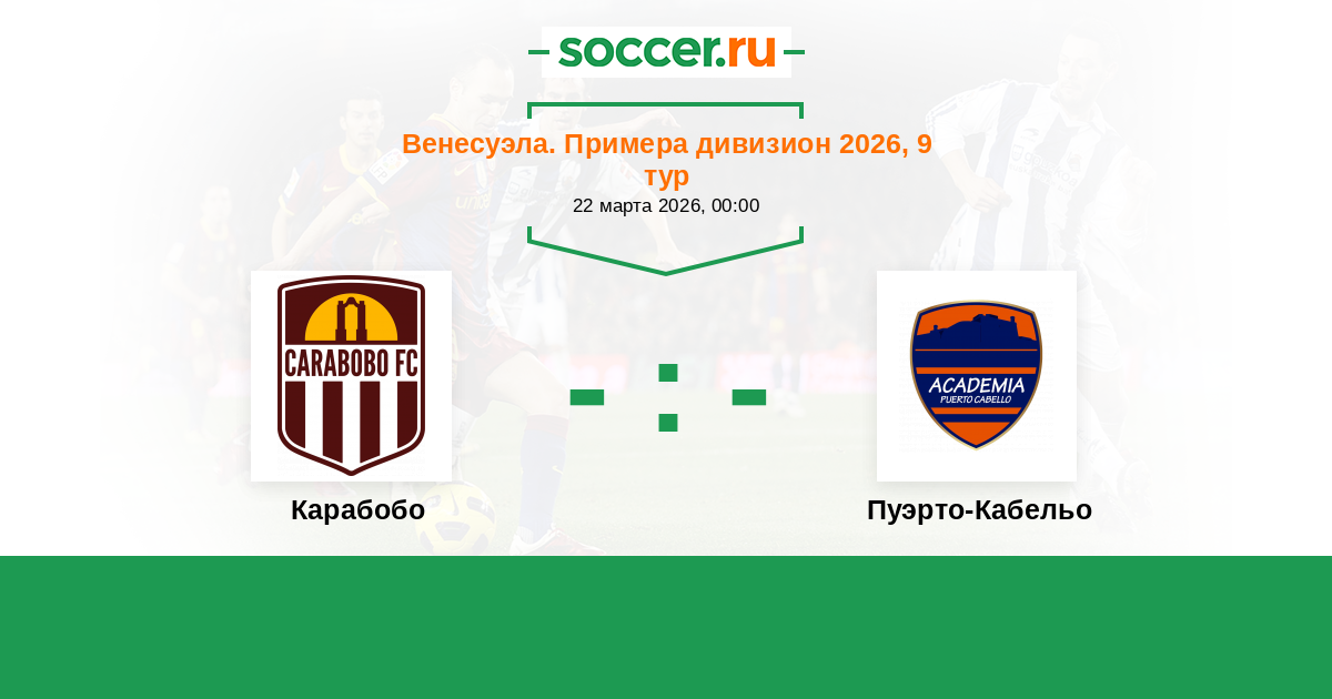 Венесуэла. Примера дивизион 09.07.2021 Пуэрто-Кабельо Логотип футбольный клуб Пуэрто-Кабельо 0:0 Логотип футбольный клуб Карабобо (Валенсия) Карабобо