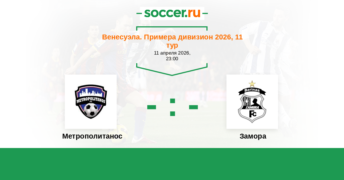 Венесуэла. Примера дивизион 23.04.2022 Замора Логотип футбольный клуб Замора (Баринас) 0:1 Логотип футбольный клуб Метрополитанос (Лос-Текес) Метрополитанос