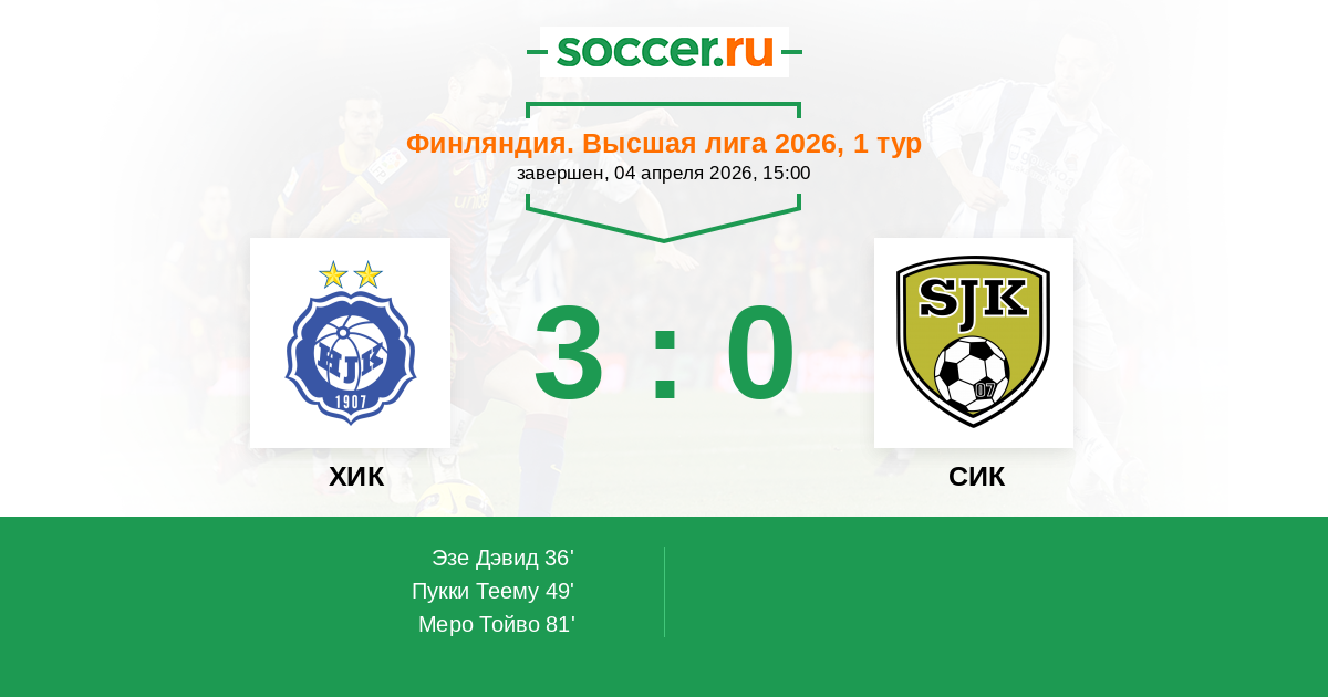 Протокол матча ХИК против СИК