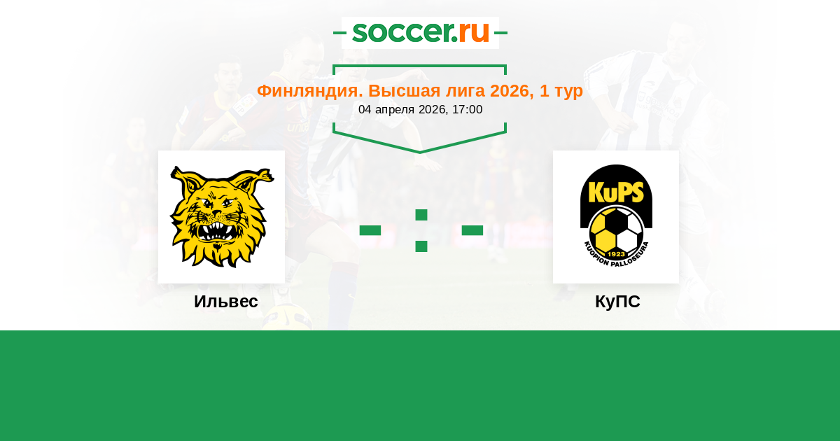 Финляндия. Высшая лига 29.04.2017 КуПС Логотип футбольный клуб КуПС (Купио) 0:1 Логотип футбольный клуб Ильвес (Тампере) Ильвес
