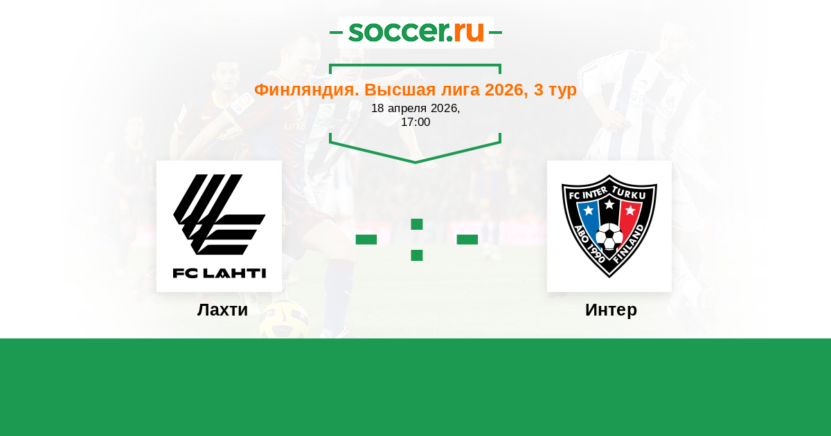 Финляндия. Высшая лига 30.06.2021 Интер Логотип футбольный клуб Интер (Турку) 1:1 Логотип футбольный клуб Лахти Лахти