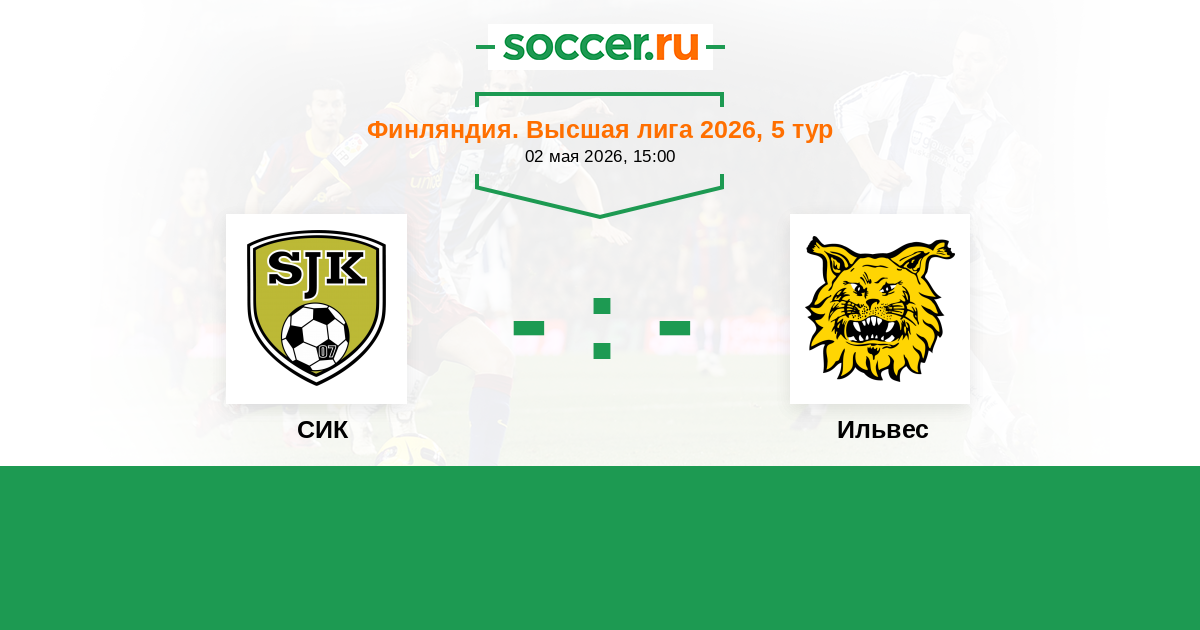 Финляндия. Высшая лига 04.10.2025 СИК Логотип футбольный клуб СИК (Сейняйоки) 2:1 Логотип футбольный клуб Ильвес (Тампере) Ильвес