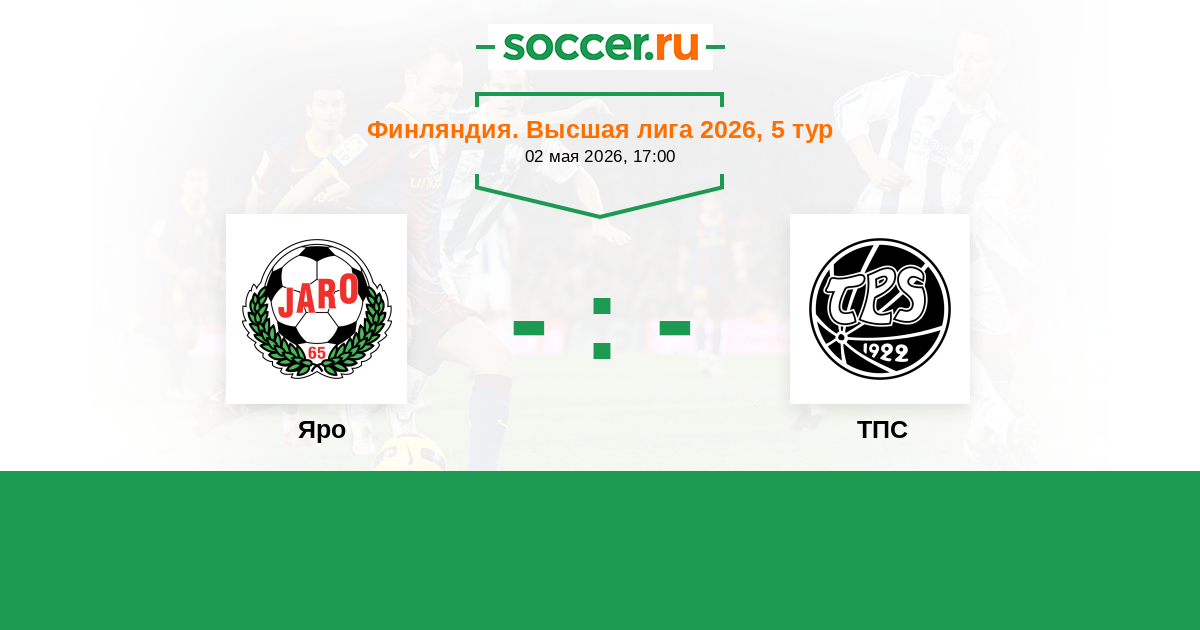 Финляндия. Первый дивизион 29.05.2022 Яро Логотип футбольный клуб Яро (Якобстад) 1:2 Логотип футбольный клуб ТПС (Турку) ТПС