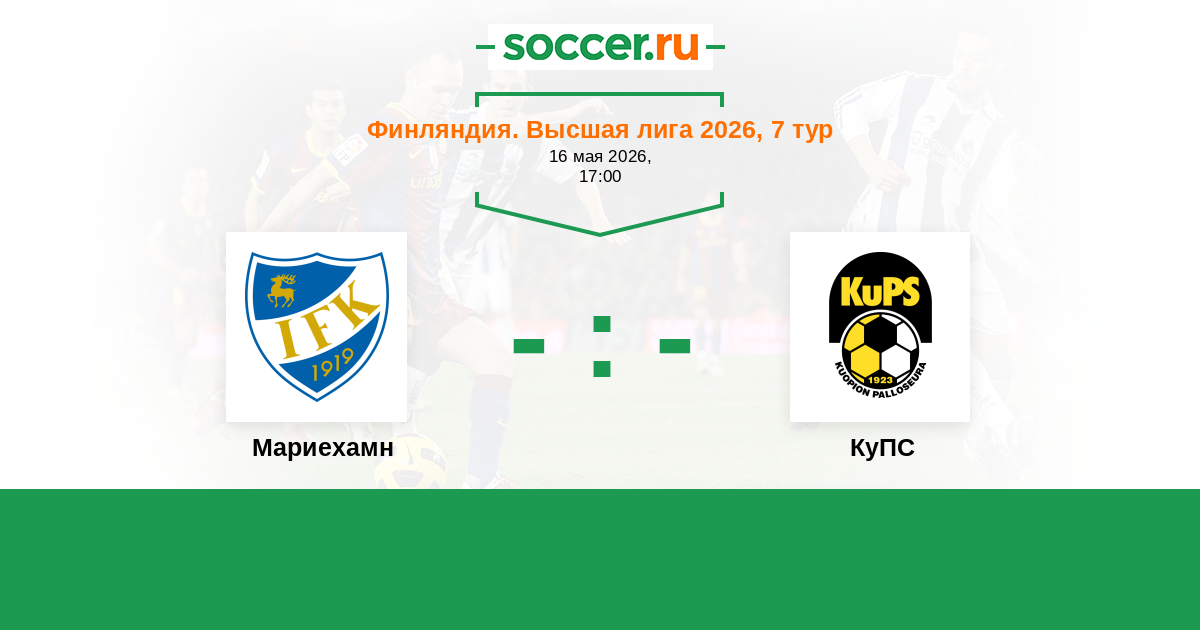 Финляндия. Высшая лига 18.06.2025 Мариехамн Логотип футбольный клуб Мариехамн 1:0 Логотип футбольный клуб КуПС (Купио) КуПС