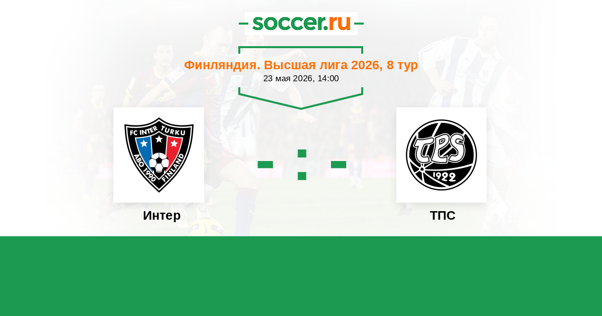 Финляндия. Высшая лига 08.06.2014 Интер Логотип футбольный клуб Интер (Турку) 2:1 Логотип футбольный клуб ТПС (Турку) ТПС