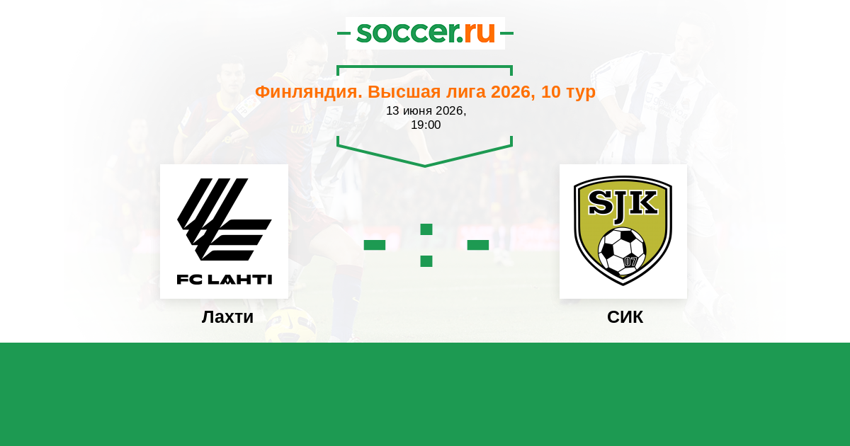 Финляндия. Высшая лига 04.07.2021 Лахти Логотип футбольный клуб Лахти 2:1 Логотип футбольный клуб СИК (Сейняйоки) СИК