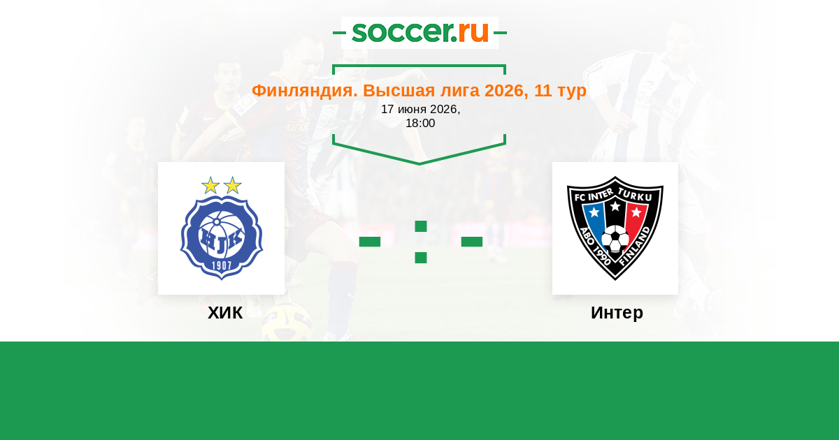 Финляндия. Высшая лига 02.07.2017 Интер Логотип футбольный клуб Интер (Турку) 1:1 Логотип футбольный клуб ХИК (Хельсинки) ХИК