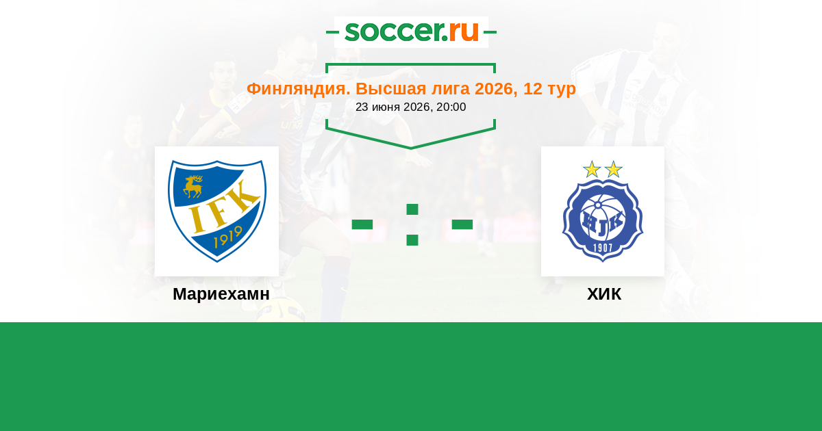 Финляндия. Высшая лига 20.06.2012 Мариехамн Логотип футбольный клуб Мариехамн 2:0 Логотип футбольный клуб ХИК (Хельсинки) ХИК