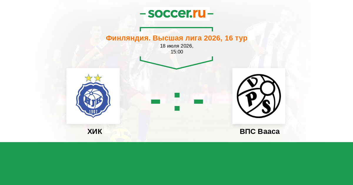 Финляндия. Высшая лига 20.09.2024 ВПС Вааса Логотип футбольный клуб ВПС Вааса 1:1 Логотип футбольный клуб ХИК (Хельсинки) ХИК