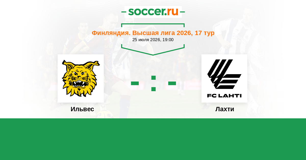 Финляндия. Высшая лига 16.06.2017 Лахти Логотип футбольный клуб Лахти 0:0 Логотип футбольный клуб Ильвес (Тампере) Ильвес