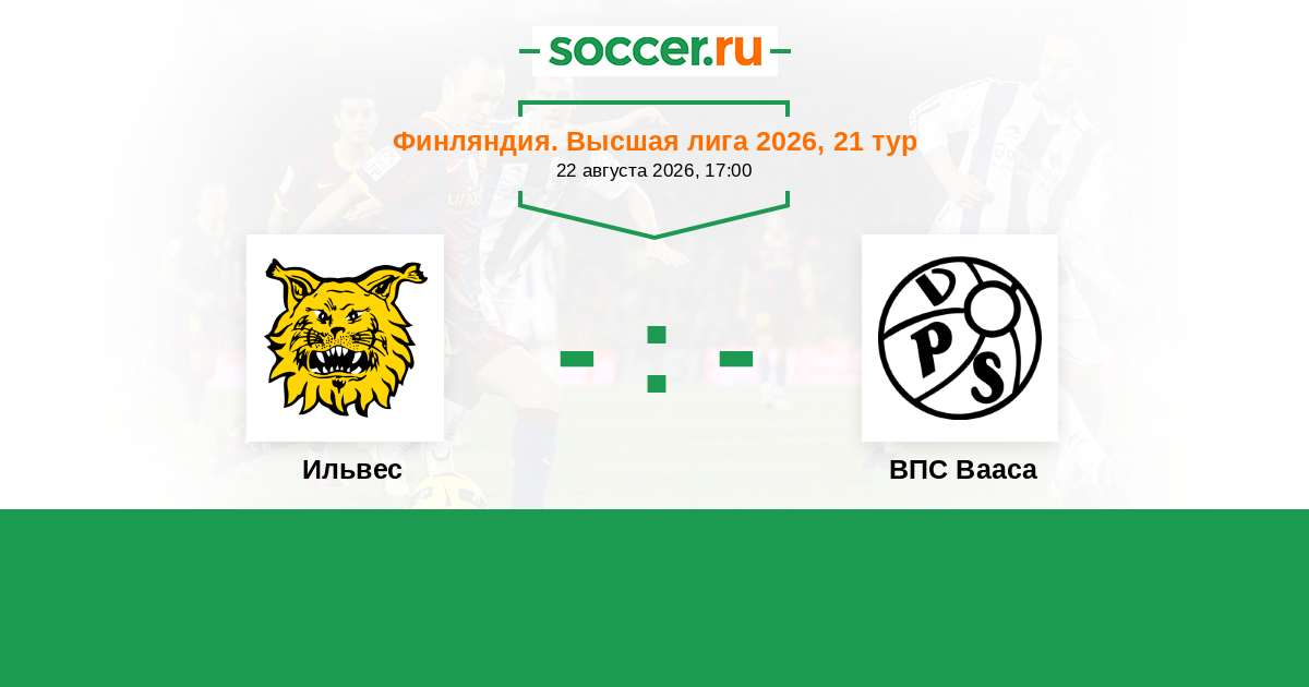 Финляндия. Высшая лига 20.08.2017 ВПС Вааса Логотип футбольный клуб ВПС Вааса 1:1 Логотип футбольный клуб Ильвес (Тампере) Ильвес