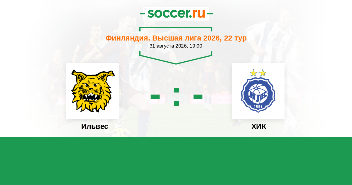 Финляндия. Высшая лига 20.07.2019 Ильвес Логотип футбольный клуб Ильвес (Тампере) 1:1 Логотип футбольный клуб ХИК (Хельсинки) ХИК