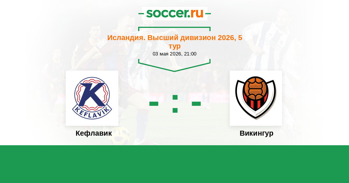 Исландия. Высший дивизион 02.05.2021 Викингур Логотип футбольный клуб Викингур (Рейкьявик) 1:0 Логотип футбольный клуб Кефлавик (Рейкьянесбар) Кефлавик