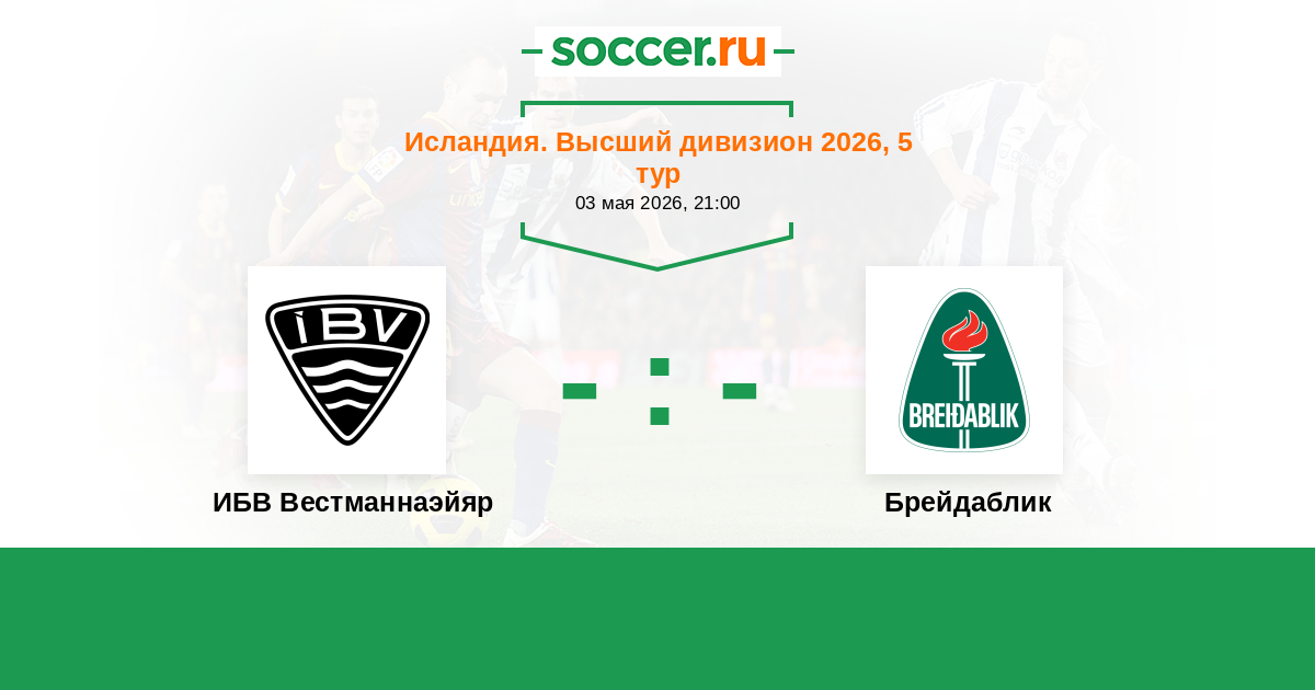 Исландия. Высший дивизион 28.04.2018 Брейдаблик Логотип футбольный клуб Брейдаблик (Коупавогюр) 4:1 Логотип футбольный клуб ИБВ Вестманнаэйяр ИБВ Вестманнаэйяр