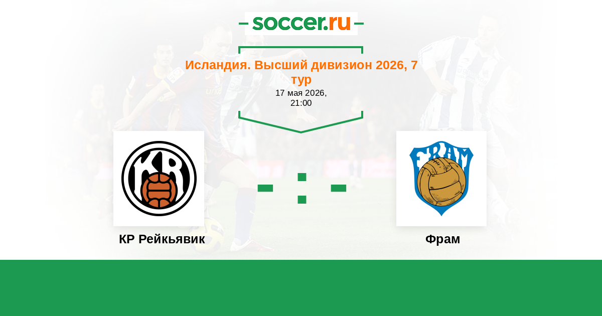 Исландия. Высший дивизион 02.06.2014 КР Рейкьявик Логотип футбольный клуб КР Рейкьявик 3:2 Логотип футбольный клуб Фрам (Рейкьявик) Фрам